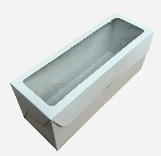 Diseñada para destacar tu budín, esta caja blanca autoarmable con tapa tipo bisagra y visor de pvc. Ideal para repostería, también se adapta a regalos o productos artesanales.