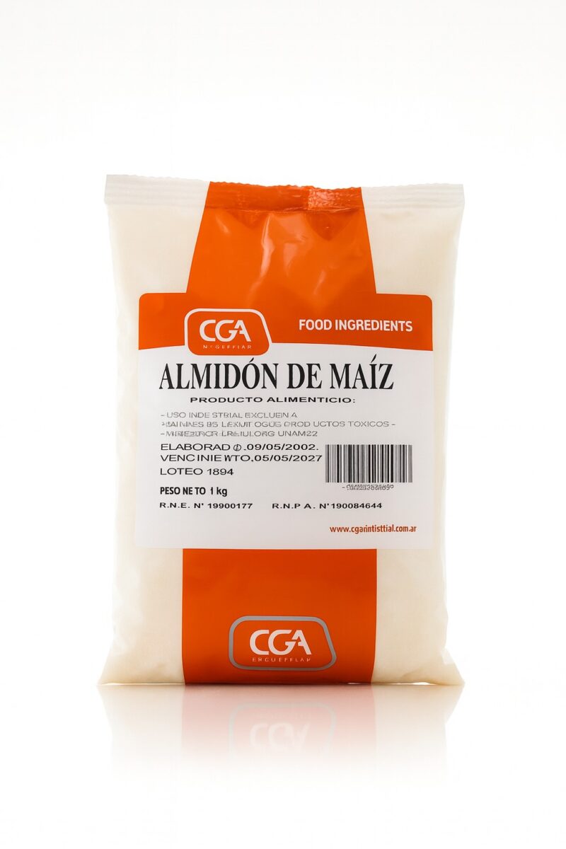 Almidón de maiz se utiliza como un espesante, agente de volumen, reemplazo de grasa, portador de sabor, emulsionante y generalmente como un ingrediente que se une al agua.