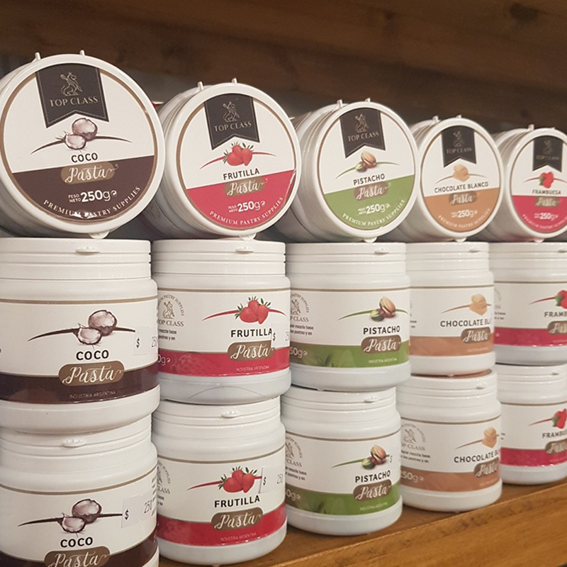 Pasta concentrada para saborizar cremas, mousse, bavarois, chocolates, rellenos, budines y cookies. Soportan altas temperaturas