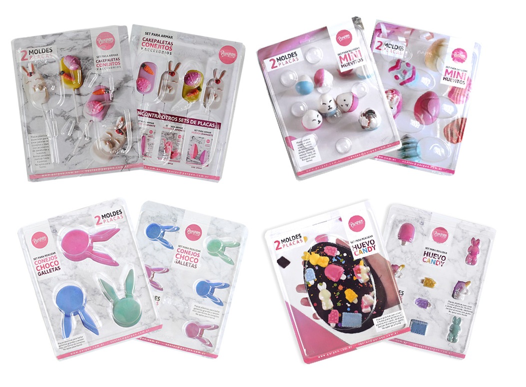 Set compuesto de 2 moldes placas plásticos, para realizar 4 paletas rellenas con cobertura de chocolate. No apto para horno.
